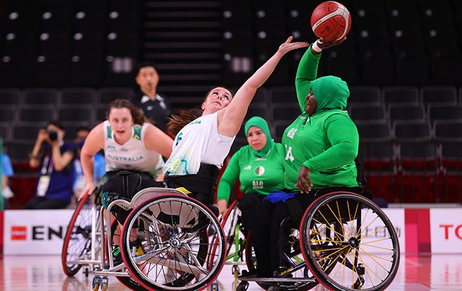 Australia’s Women’s Wheelchair basketball team takes on Algeria during day 7 of the 2020 Tokyo Paralympic Games.