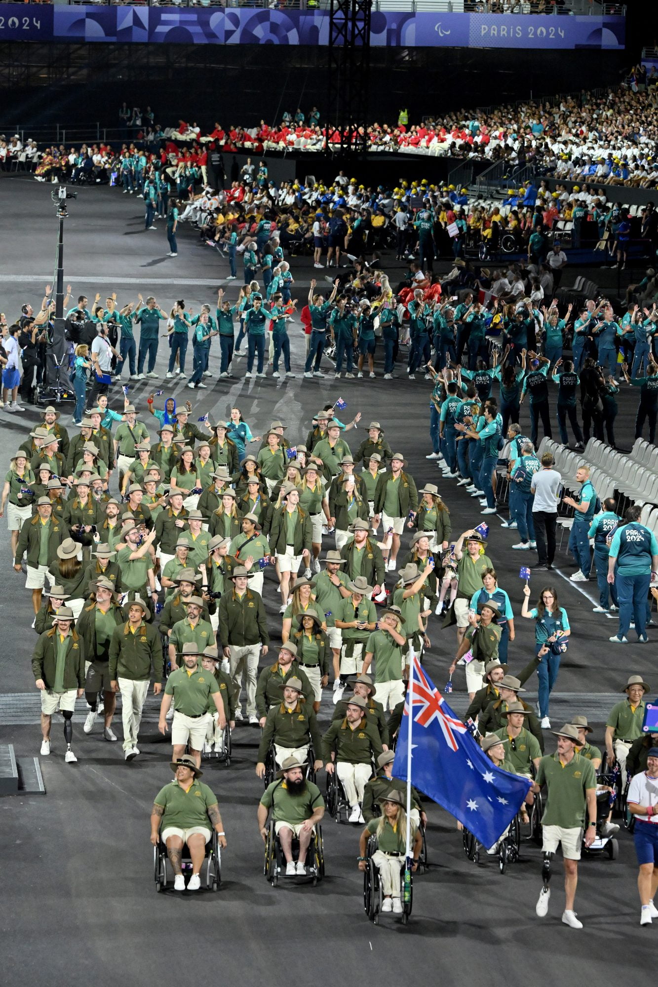 This heralded the parade of nations, where 120 Australian athletes and staff marched third from the end. That signified being the hosts of the 2032 Games, with hosts in 2028 the United States of America second last, and finally the 2024 hosts France.
